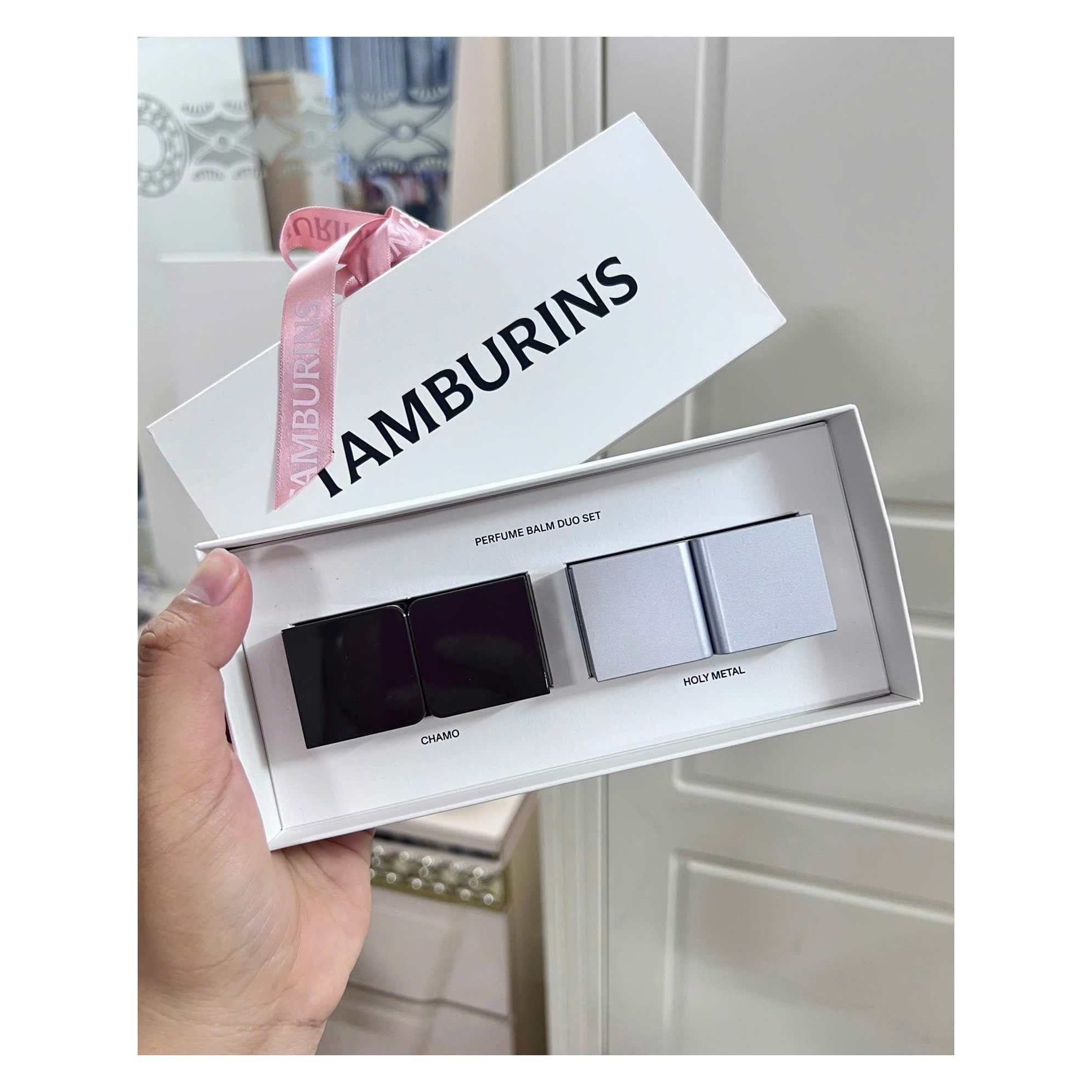 Set Tamburins Perfume Balm siêu trendy gồm 2 bé siu xinh, mỗi bé 6,5gr ạ. Hộp box nơ xinh lắm ý, cái này đi tặng vừa lịch sự vừa kinh tế ạ .